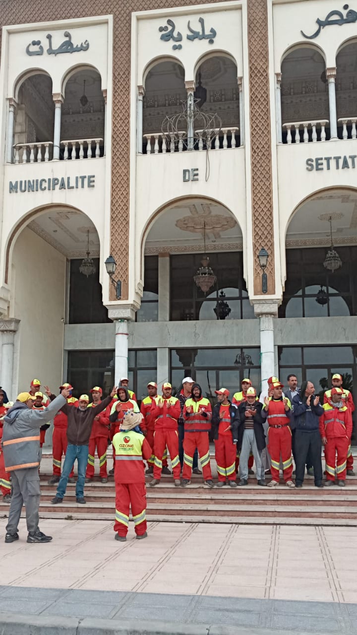 نظم عمال شركة اوزون للنظافة بسطات مساء يوم الثلاثاء 12 ابريل على الساعة الثالثة بعد الزوال ، وقفة احتجاجية انذارية امام مقر بلدية سطات ، احتجاجا على ما اقدمت عليه ادارة الشركة في شهر رمضان حيث حولت توقيت العمل على غير المعتاد الى الثامنة و النصف عوض السادسة صباحا، نظرا لصعوبة العمل بهذا التوقيت ، و وفقا لبلاغ للمكتب النقابي لشركة اوزون سطات المنضوي تحت لواء النقابة الوطنية للجماعات الترابية و التدبير المفوض بالكونفدرالية الديمقراطية للشغل توصلنا بنسخة منه ، ان المكتب النقابي يدين هذا التصرف و الذي يحمل بين طياته اسلوبا انتقاميا من العمال و يطالب الشركة بالتراجع عن هذا القرار و يحمل المجلس الجماعي لسطات مسؤولية هذه التصرفات الانفرادية بتغييره لتوقيت العمل و اقصاء ممثلي العمال من اداء دورهم كما تنص على ذلك مدونة الشغل .