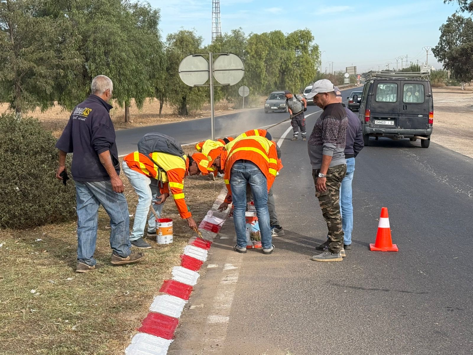 الحملة همّت في مرحلتها الأولى صباغة المدارات الطرقية، وتشذيب الأشجار، وجمع النفايات، في إطار برنامج يروم تحسين جمالية الفضاءات العمومية وتعزيز نظافة المحيط.